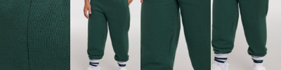 50% combed ringspun cotton/50% polyester. Elasticated waistband and ankles. Deep side pockets. No outside leg seam.